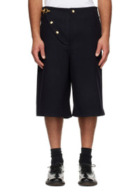 Virgin wool-blend melton shorts. · Lobster-clasp fastening at waistband · Four-pocket styling · Zip fly with offset press-stud placket · Antiqued gold-tone hardware Supplier color: Navy Body: 75% virgin wool, 25% nylon. Trim: 100% cotton. Made in Portugal 252752M193004