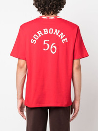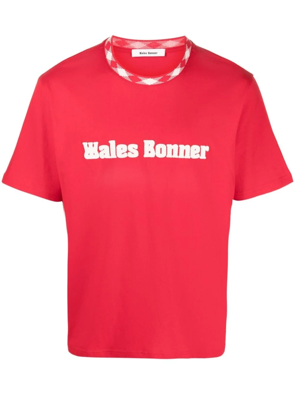 Original logo-applique T-shirt Wales Bonner's nostalgic mood is encapsulated in this organic cotton T-shirt. Inspired by sporty designs, it has a logo applique and a print motif that pays homage to Sorbonne University's First Congress of Black Artists and Writers in 1956. Highlights - Bright red - Organic cotton - Applique logo - Graphic print to the rear - Crew neck - Short sleeves - Straight hem Imported Composition Organic Cotton 100%, Polyester 95%, Spandex/Elastane 5% SIZE & FIT Model measurements Height 6 ft 1 in(1.86 m) Bust/Chest 34.64 in(88 cm) Hips 35.43 in(90 cm) Waist 27.55 in(70 cm) FittingInformation Designed for a relaxed fit, this piece allows for comfort and movement when worn Made from a midweight non-stretch fabric, this piece offers minimal elasticity when worn This piece fits true to size – take your usual size