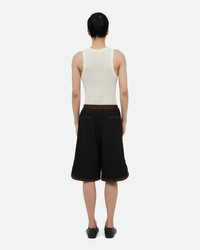 The Ossie Shorts A hybrid tailoring-wool short in a basketball inspired silhouette, accentuated by brown satin details on the waistband, hem and side seam. - Relaxed Fit - Made in Italy - 100% Wool