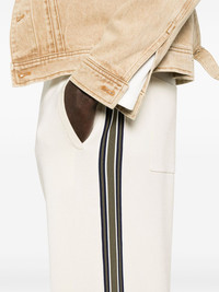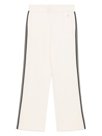 Tide track pants Highlights - Light beige - Elasticated waistband - Two side inset pockets - Two rear patch pockets - Side stripe detailing Imported Composition Viscose 75%, Polyester 23%, Nylon 2% SIZE & FIT Model measurements Height 6 ft 2 in(1.87 m) Bust/Chest 36.41 in(92.5 cm) Hips 37 in(94 cm) Waist 29.52 in(75 cm) FittingInformation Designed with a wide leg, offering a loose and roomy fit The elasticated waist allows for a comfortable fit Made with a midweight knit, this piece offers some stretch