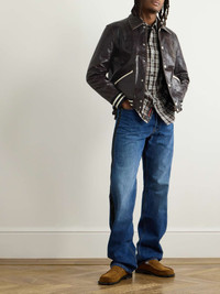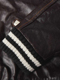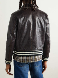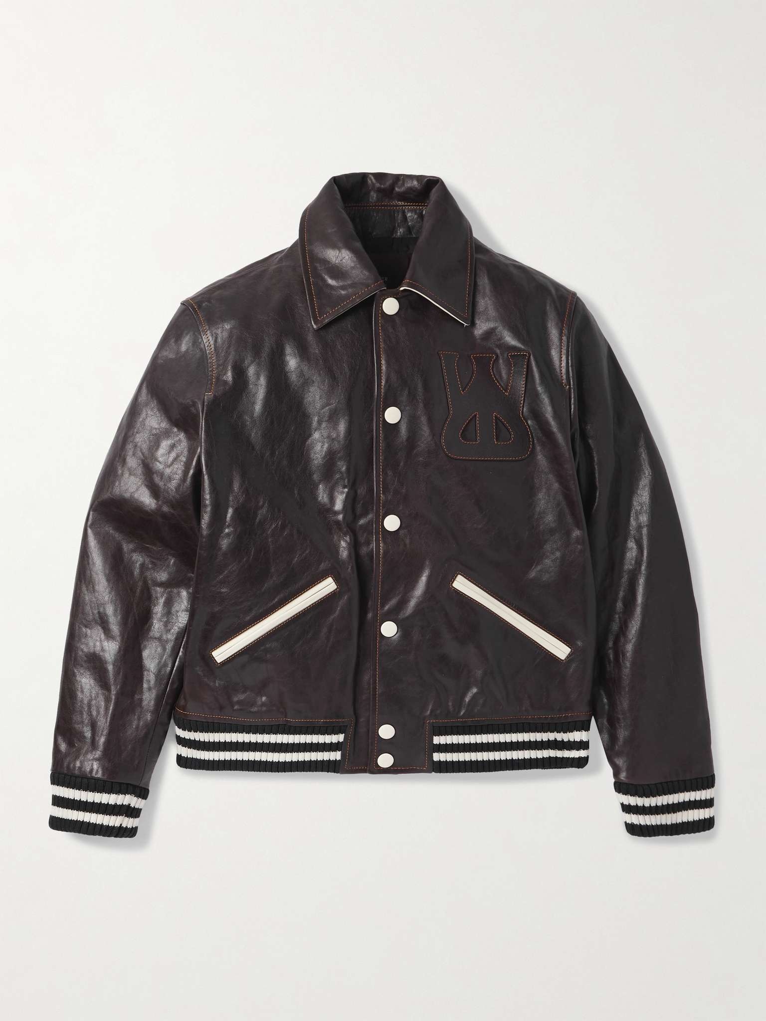 Wales Bonner refines the varsity jacket while keeping its collegiate charm. Accented with ivory trims, this 'Prince' style has been crafted in Italy from dark-brown leather and is appliqued with a logo, traced with orange topstitching, at the chest. It's lightly padded for warmth. Size & Fit - Fits small to size. Take one size larger than normal - Designed for a slightly loose fit - Ribbed hem - Supple, non-stretchy leather - Model is shown wearing an IT 48 - Model measures: chest 38"/ 96cm, height 6'0"/ 183cm Details & Care - Dark-brown and ivory leather, black and ivory ribbed-knit - Snap fastenings - 100% leather (Cow); padding: 100% polyester; lining: 100% viscose - Specialist clean