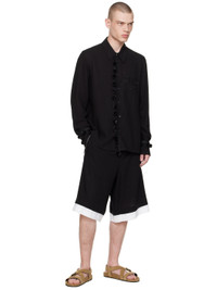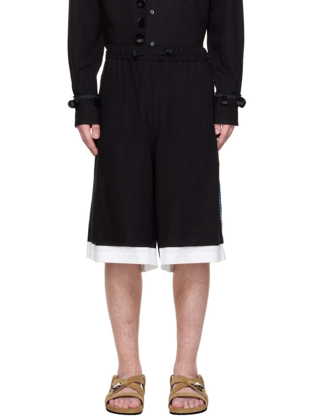 Relaxed-fit viscose- and linen-blend twill shorts. · Layered construction · Cord-lock drawstring at elasticized waistband · Three-pocket styling · Mock-fly · Knit trim at outseams · Exposed cotton poplin lining at cuffs Supplier color: Black