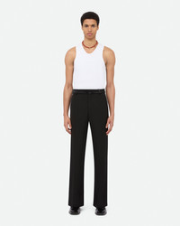 The Rise Tailored Trousers fit straight through the legs with a slight flare at the break. They are accentuated by a satin waistband and satin details on the pocket openings. Gilbert is 1.89m / 6'2.5 and wears size 48 - Tuxedo Trouser - Made in Italy - 100% Wool