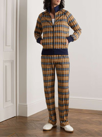 Wales Bonner's designs often draw influence from retro sportswear - the checked pattern on these track pants give them a distinct '70s feel. They're made from jersey blended with plenty of recycled fibres and cotton and have a comfortable elasticated waistband and piped seams along each leg. Complete the look with the coordinating jacket. Small to size. See Size & Fit notes. Size & Fit - Fits small to size. Take one size larger than normal - Slim-straight leg, high-rise style - Elasticated at the waist - Mid-weight, slightly stretchy fabric - Model is shown wearing a M - Model measures: waist size 30, height 6'1"/ 185cm Details & Care - Multicoloured recycled-jersey - 69% recycled polyester, 31% cotton; trim: 100% cotton - Machine wash - Made in Italy