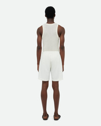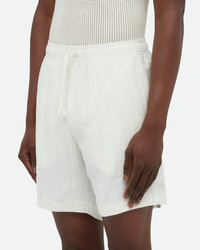 The Garden Short Curved hem short crafted in a striped viscose-linen fabric with a drawcord waistband. - Regular Fit - Short Length - 75% Viscose, 25% Linen