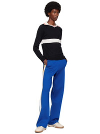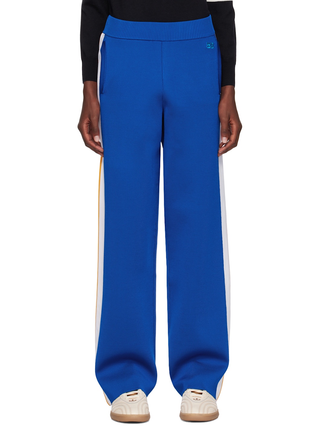 Viscose-blend pique track pants. · Rib knit elasticized waistband · Four-pocket styling · Stripes at outseams · Logo embroidered at front waist Supplier color: Blue