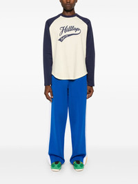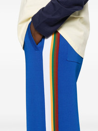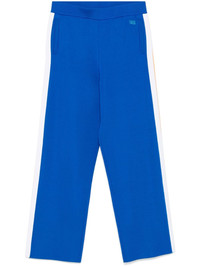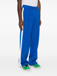 Tide track pants Highlights - Blue/multicolour - Knitted construction - Elasticated waistband - Embroidered logo to the side - Two side welt pockets - Side stripe detailing - Two rear patch pockets - Straight leg Imported Composition Viscose 75%, Polyester 23%, Nylon 2% SIZE & FIT Model measurements Height 6 ft 2 in(1.88 m) Bust/Chest 36.61 in(93 cm) Hips 35.82 in(91 cm) Waist 27.95 in(71 cm) FittingInformation Designed for a relaxed straight leg, allowing a comfortable and loose fit over the leg The elasticated waist allows for a comfortable fit Made with a midweight knit, this piece offers some stretch
