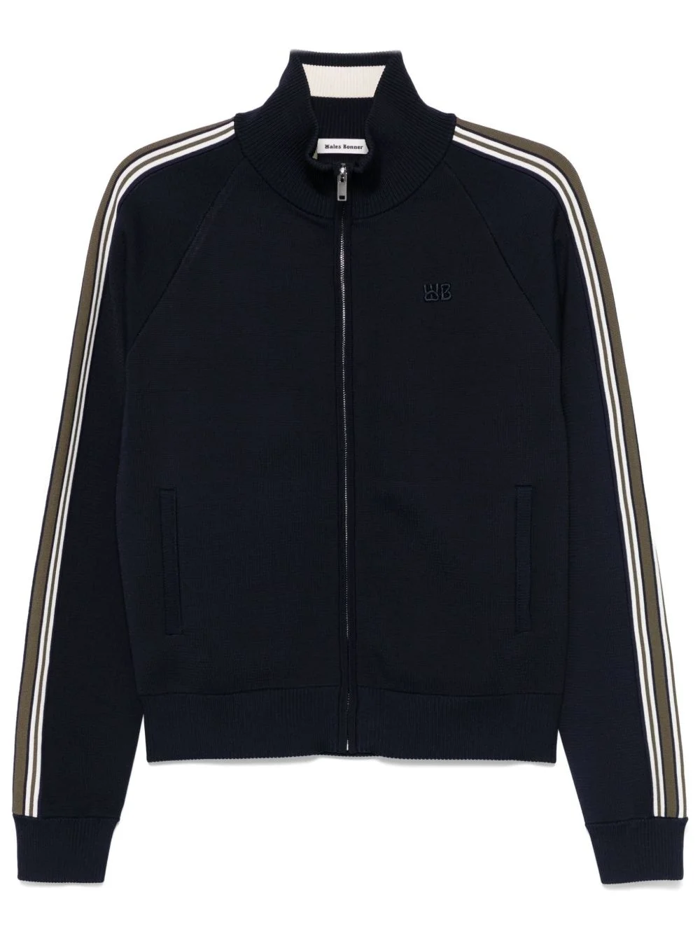 Tide track top Highlights - Navy blue - Front zip fastening - High neck - Long raglan sleeves - Two side welt pockets Imported Composition Viscose 75%, Polyester 23%, Nylon 2% SIZE & FIT Model measurements Height 6 ft 2 in(1.89 m) Bust/Chest 35.03 in(89 cm) Hips 38.18 in(97 cm) Waist 29.92 in(76 cm) FittingInformation Designed for a relaxed fit, this piece allows for comfort and movement when worn Made from a midweight non-stretch fabric, this piece offers minimal elasticity when worn