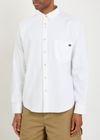 Info & Care Wales Bonner pique cotton Oxford shirt Button-down collar, button-fastening cuffs, embroidered logo at chest patch pocket, box pleat at back, curved hem, contrast stitching Button fastenings through front 100% cotton Machine wash Size & Fit Length shoulder to hem: 27.5 inches/ 70cm Midweight Regular fit Model is 6'2"/ 188cm, chest size 38 inches and wears a size;IT48
