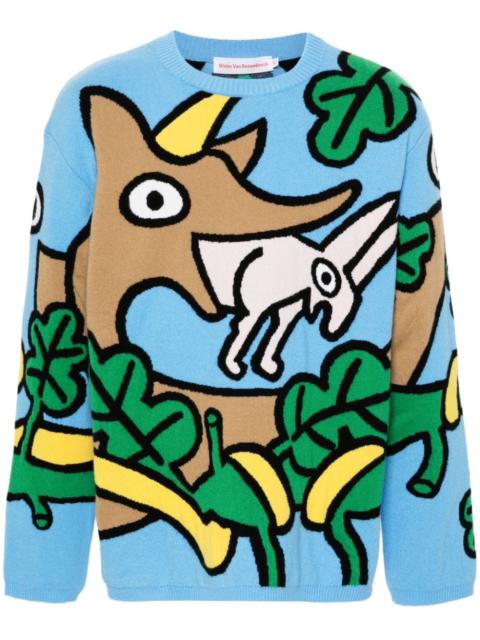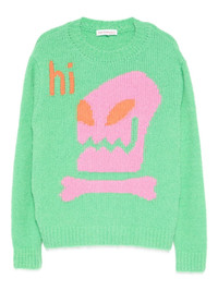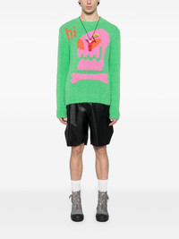 alien-intarsia jumper Highlights - Grass green - Crew neck - Long sleeves Imported Composition Wool 46%, Acrylic 30%, Polyamide 14%, Alpaca 10% SIZE & FIT Model measurements Height 6 ft 3 in(1.9 m) Bust/Chest 19.29 in(49 cm) Hips 38.58 in(98 cm) Waist 32.28 in(82 cm) FittingInformation Designed for a relaxed fit, this piece allows for comfort and movement when worn The ribbed hem offers a close, comfortable fit Made with a midweight knit, this piece offers some stretch Washing instructions Dry Clean Only