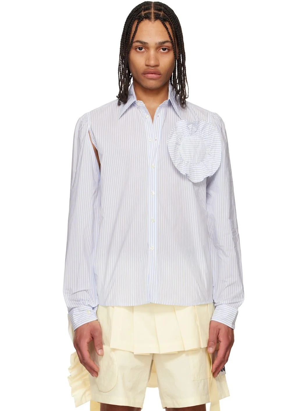Nylon-blend taffeta shirt. Slit with button fastening at underarms for alternate styling. · Stripes throughout · Spread collar · Button closure · Floral applique at chest · Shirttail hem · Gathering at shoulders · Pleated buttoned barrel cuffs · Locker loop at back yoke · Mother-of-pearl hardware Supplier color: Off-White 68% polyamide, 32% polyester. Made in Italy 251278M192008