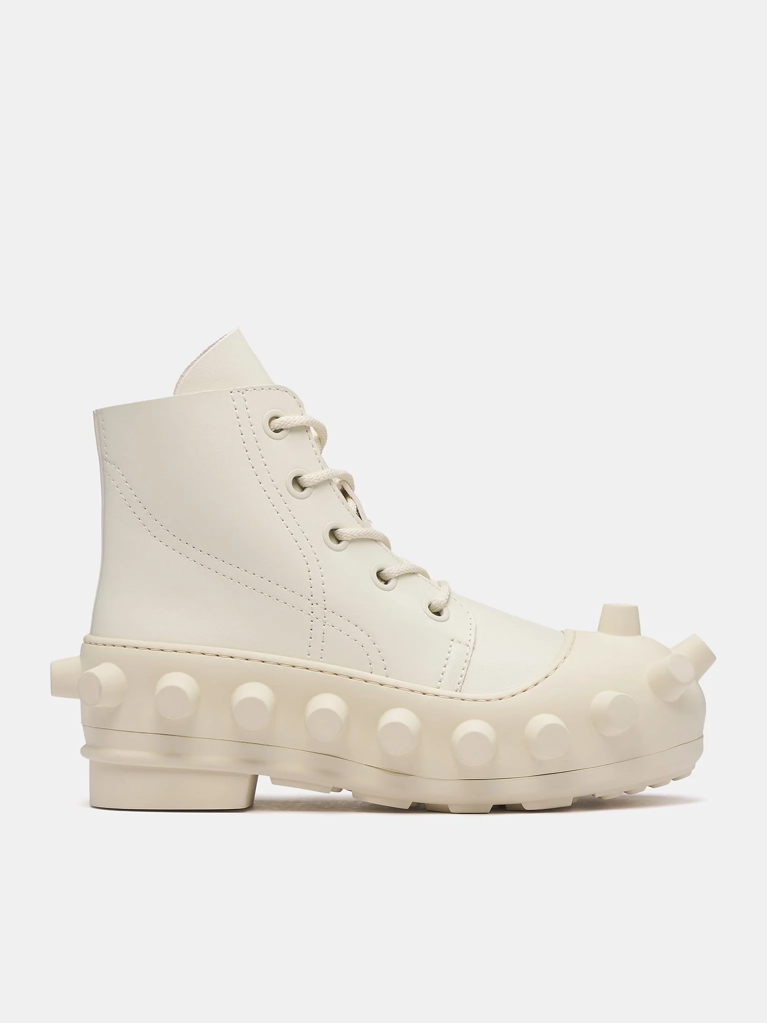 WALTER VAN BEIRENDONCK boots in milk, leather upper construction, ankle-high, lace-up fastening, rubber stud embellishment, rubber block heel, rubber sole, lined. Upper: Leather Sole: Rubber Italian Sizing