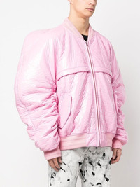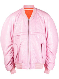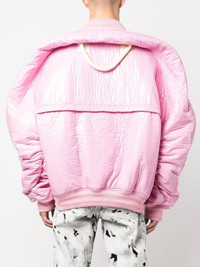 Cercle bomber jacket pink cotton crinkled finish yoke design ribbed band collar front zip fastening two front flap pockets ribbed edge striped edge single rolled handle to the back Made in Italy Composition Outer: Polyester 75%, Polyurethane 25% Lining: Cotton 100%, Polyester 100% SIZE & FIT Model measurements Height 6 ft 1 in(1.86 m) Bust/Chest 36.61 in(93 cm) Hips 37 in(94 cm) Waist 28.74 in(73 cm) FittingInformation This piece fits true to size. We recommend you get your regular size Cut for an oversized fit Made with a mid-weight non-stretch fabric Washing instructions Dry Clean Only