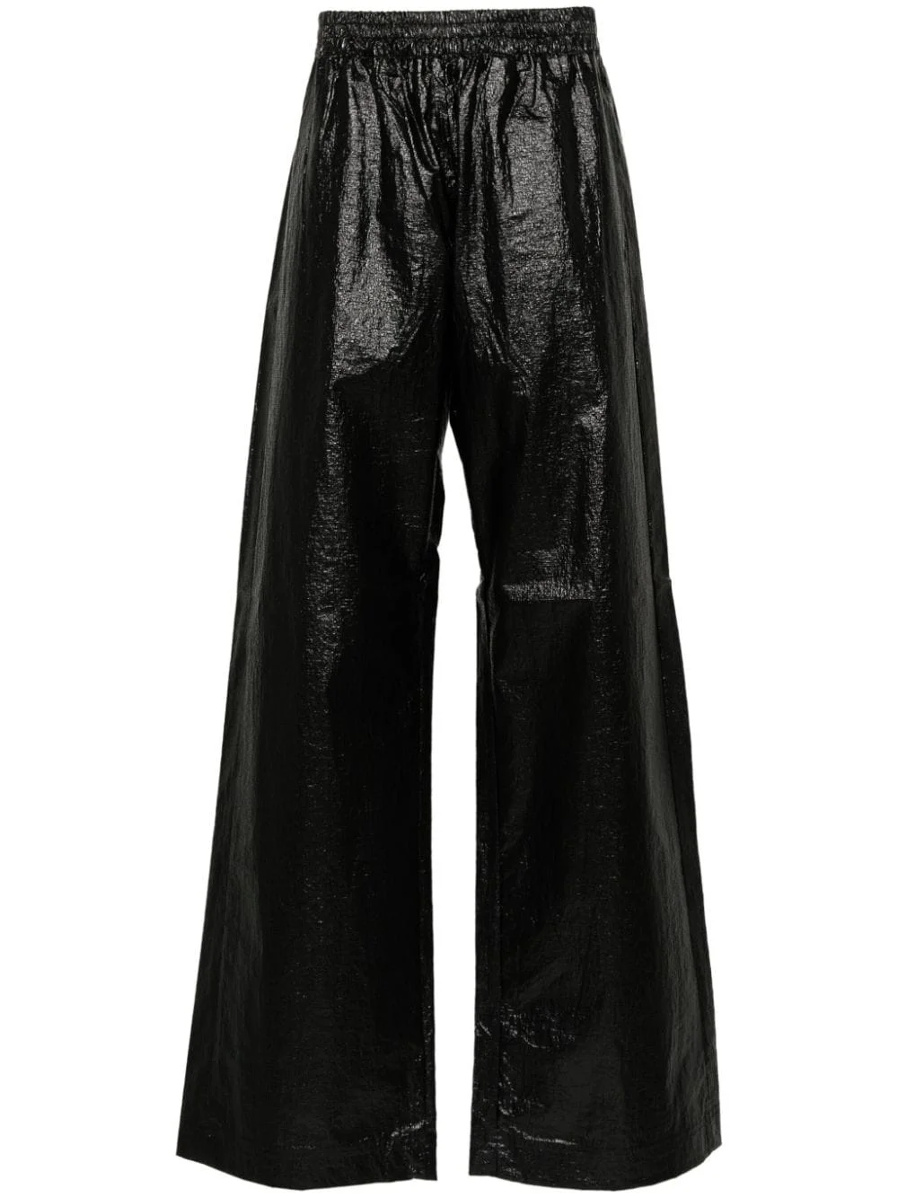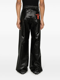 embroidered-logo trousers Highlights - Black - Textured finish - Embroidered logo to the rear - Elasticated waistband - Two side inset pockets - Straight leg - Rear patch pocket Made in Italy Composition Polyamide 100% SIZE & FIT Model measurements Height 6 ft 2 in(1.87 m) Bust/Chest 38.18 in(97 cm) Hips 36.61 in(93 cm) Waist 29.13 in(74 cm) FittingInformation Designed with a wide leg, offering a loose and roomy fit The elasticated waist allows for a comfortable fit Made from a lightweight non-stretch fabric This piece fits true to size – take your usual size