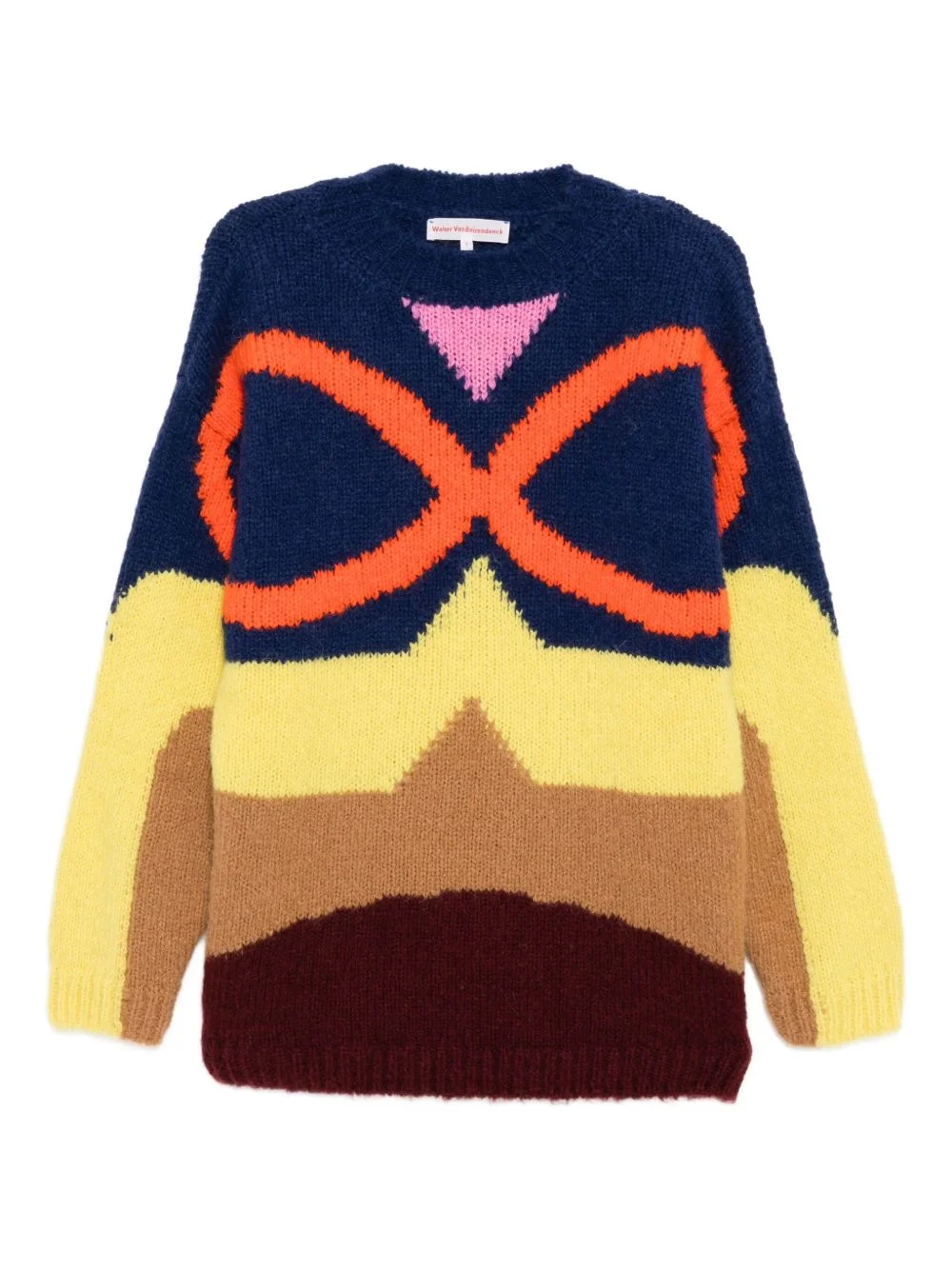 Face jumper Highlights - Blue/multicolour - Crew neck - Long sleeves - Ribbed cuffs and hem Imported Composition Wool 46%, Acrylic 30%, Polyamide 14%, Alpaca 10% SIZE & FIT Model measurements Height 6 ft 2 in(1.87 m) Bust/Chest 33.07 in(84 cm) Hips 35.43 in(90 cm) Waist 26.77 in(68 cm) FittingInformation Designed for an oversized fit, offering additional room throughout Made with a midweight knit, this piece offers some stretch Washing instructions Dry Clean Only