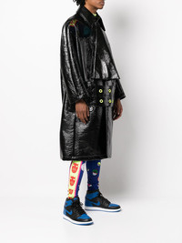 Mask coat black wool high-shine finish belted waist classic collar long sleeves straight hem Imported Composition Wool 75%, Polyamide 25% SIZE & FIT Model measurements Height 6 ft 2 in(1.88 m) Bust/Chest 38.18 in(97 cm) Hips 37 in(94 cm) Waist 29.92 in(76 cm) FittingInformation This piece is unisex. Please take care when selecting your size Designed for a loose fit for men and an oversized fit for women Made with a mid-weight non-stretch fabric