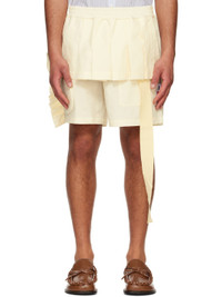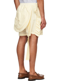 Nylon canvas shorts. · Elasticized waistband · Four-pocket styling · Pleated skirt-style overlay at front waistband · Extended grosgrain trim at waistband · Circular applique at front cuff · Ruffled trim at outseam · Logo flag at outseam · Padded overlay with inset graphic patches at back Supplier color: Comb. II/Off-white 100% nylon. Made in Italy 251278M193006