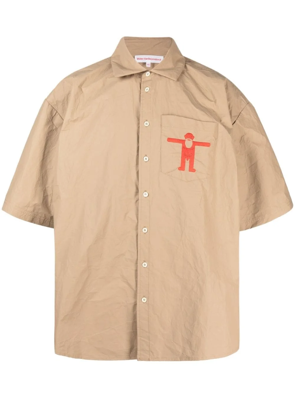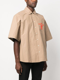 Star logo-print oversize shirt Highlights - Cognac brown - Logo print at the chest - Classic collar - Chest patch pocket - Front button fastening - Short sleeves - Straight hem Made in Italy Composition Polyethylene 50%, Polyurethane 50% SIZE & FIT Model measurements Height 6 ft 2 in(1.88 m) Bust/Chest 36.61 in(93 cm) Hips 35.82 in(91 cm) Waist 27.95 in(71 cm) FittingInformation Designed to be unstructured, offering a loose fit throughout Made from a lightweight non-stretch fabric This piece fits true to size – take your usual size