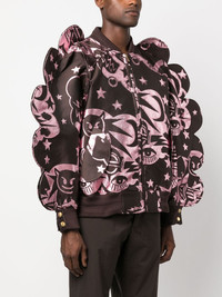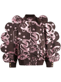 Wings oversized bomber jacket Highlights - Chocolate brown - Powder pink - Metallic threading - Patterned jacquard - Ribbed band collar - Front zip fastening - Two front flap pockets - Long wide sleeves - Press-stud fastening at the sleeves - Ribbed cuffs and hem Made in Italy Composition Lining: Cotton 100% Outer: Polyester 45%, Silk 33%, Metallic Fibre 22% SIZE & FIT Model measurements Height 6 ft 2 in(1.88 m) Bust/Chest 36.61 in(93 cm) Hips 35.82 in(91 cm) Waist 27.95 in(71 cm) FittingInformation Designed to be unstructured, offering a loose fit throughout The ribbed hem offers a close, comfortable fit Made from a midweight non-stretch fabric This piece fits true to size – take your usual size