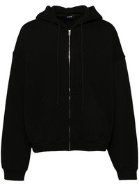 around zip-up hoodie Highlights - Black - Front zip fastening - Drawstring hood - Two side pouch pockets Imported Composition Cotton 100%