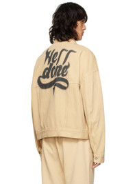 Paneled non-stretch denim jacket. · Spread collar · Button closure · Flap pockets at chest · Welt pockets at waist · Single-button barrel cuffs · Logo graphic printed at back · Unlined · Logo-engraved silver-tone hardware Supplier color: Beige 100% cotton.