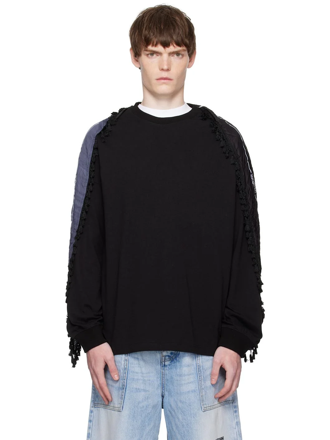 Cotton jersey T-shirt. · Rib-knit crewneck and cuffs · Detachable fringed scarf at crewneck · Embroidered logo at chest · Dropped shoulders Supplier color: Black Body: 100% cotton. Trim 1: 95% cotton, 5% polyurethane. Trim 2: 100% polyester. Made in South Korea 252327M213014