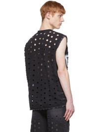 Non-stretch denim vest. Cut-outs with raw edges throughout. · V-neck · Press-stud closure · Spray paint effect logo at front · Welt pockets · Fading and distressing throughout Supplier color: Wash black 100% cotton. Made in South Korea 221327M185008