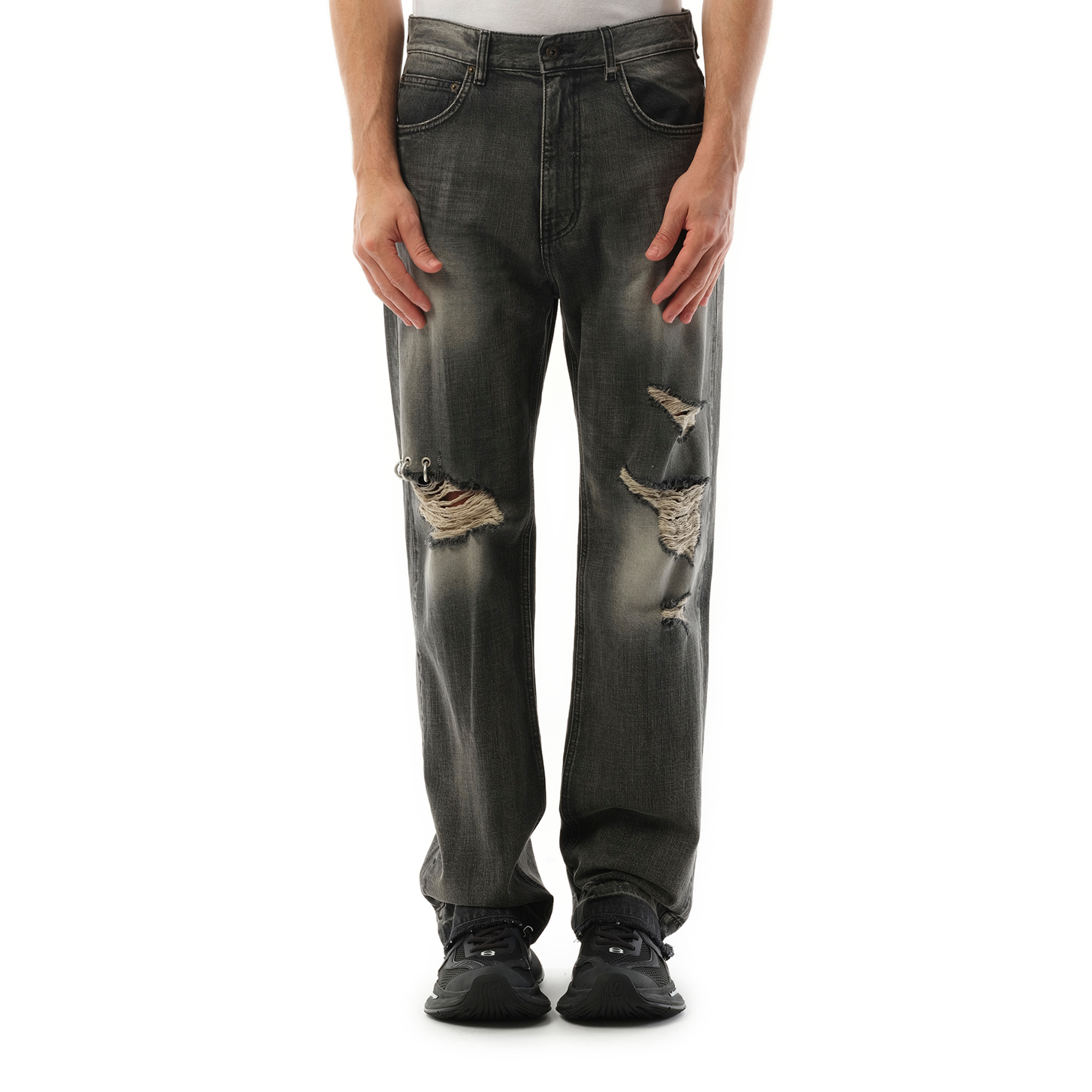 Made with high-quality materials, these trousers are built to last and provide a versatile addition to any wardrobe. Perfect for casual or dressed-up looks, these trousers are an essential for any fashion-forward individual. - Composition: 100% Cotton - Front button fastening - Ripped detailing - Classic five pockets - Straight leg - Made in South Korea Model is 192 cm and wears size M SKU: WDDP025333MBK