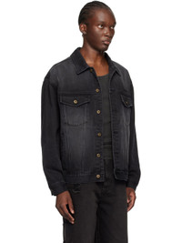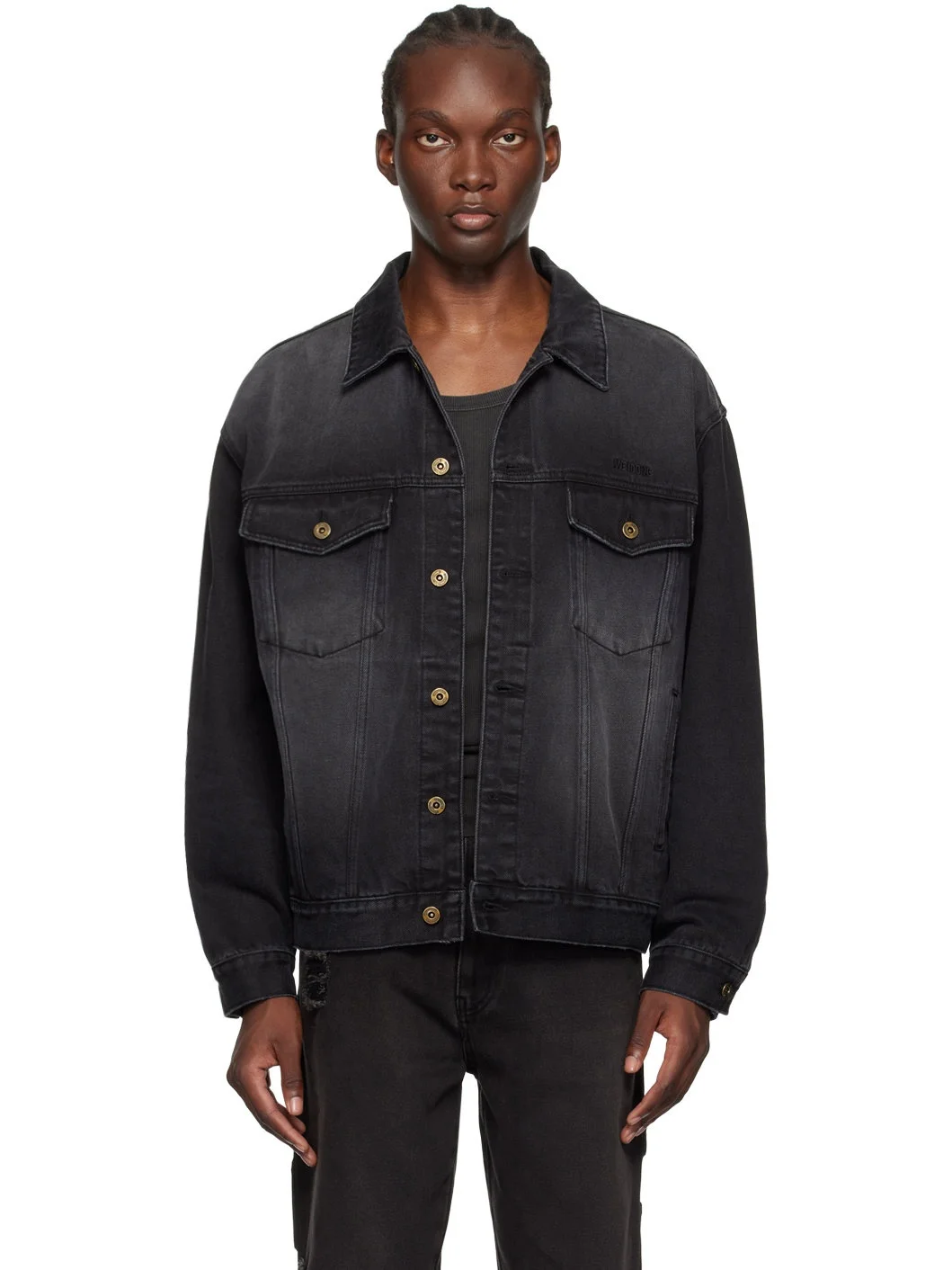Non-stretch cotton- and polyester-blend denim jacket. Fading throughout. · Spread collar · Button closure · Logo embroidered at chest · Flap and welt pockets · Barrel cuffs · Button tabs at back hem Supplier color: Black 72% cotton, 26% polyester, 2% regenerated cellulose fibre. Made in South Korea 242327M177006