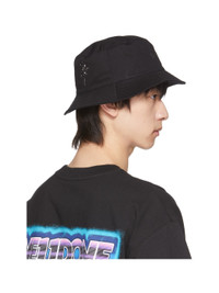 Cotton twill bucket hat in black. Crystal-cut graphic applique at face. · Quilted brim · Crystal-cut logo applique at back face · Satin lining Supplier color: Black 100% cotton. Made in South Korea 221327M140006