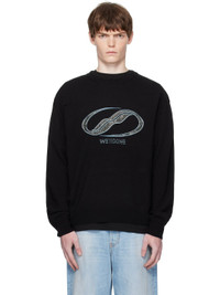 Knit wool sweater. · Rib-knit crewneck, hem, and cuffs · Printed logo with crystal-cut accents at chest · Dropped shoulders Supplier color: Black 100% wool. Made in South Korea 252327M201002