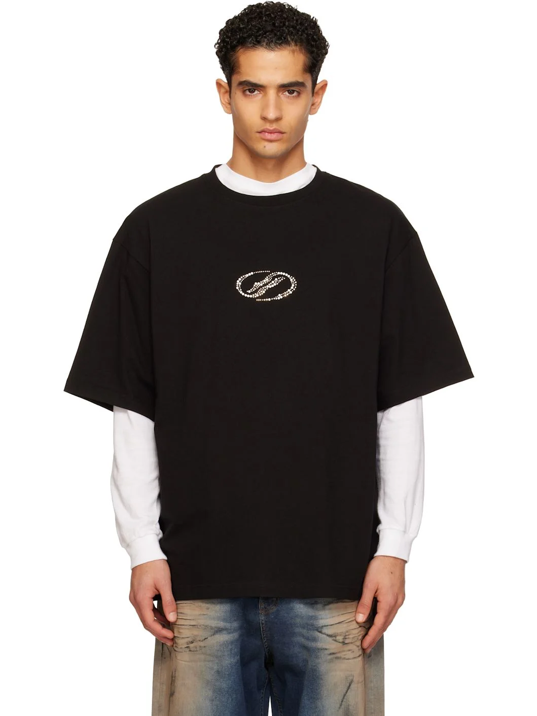 Cotton jersey T-shirt. · Rib-knit crewneck · Crystal-cut logo graphic at chest · Dropped shoulders · Logo embroidered at back hem Supplier color: Black 100% cotton. Made in South Korea 261327M213019