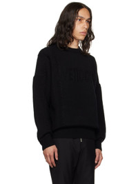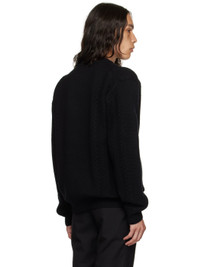 Knit and cable knit wool- and nylon-blend sweater. · Rib knit crewneck, hem, and cuffs · Jacquard logo at front · Dropped shoulders Supplier color: Black 80% wool, 20% nylon. Made in South Korea 232327M201010