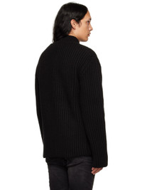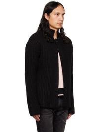 Rib knit wool and cashmere-blend cardigan. · Button fastening at mock neck · Open front · Textile logo patch at sleeve Supplier color: Black 95% wool, 5% cashmere. Made in South Korea 222327M200011