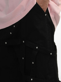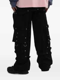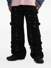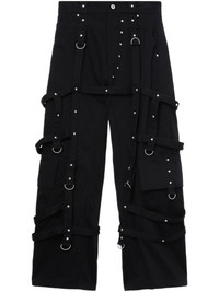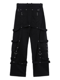 strap-detail trousers Highlights - Black - Front button and zip fastening - Belt loops - Two side slash pockets - Caged design Imported Composition Polyester 67%, Cotton 33%