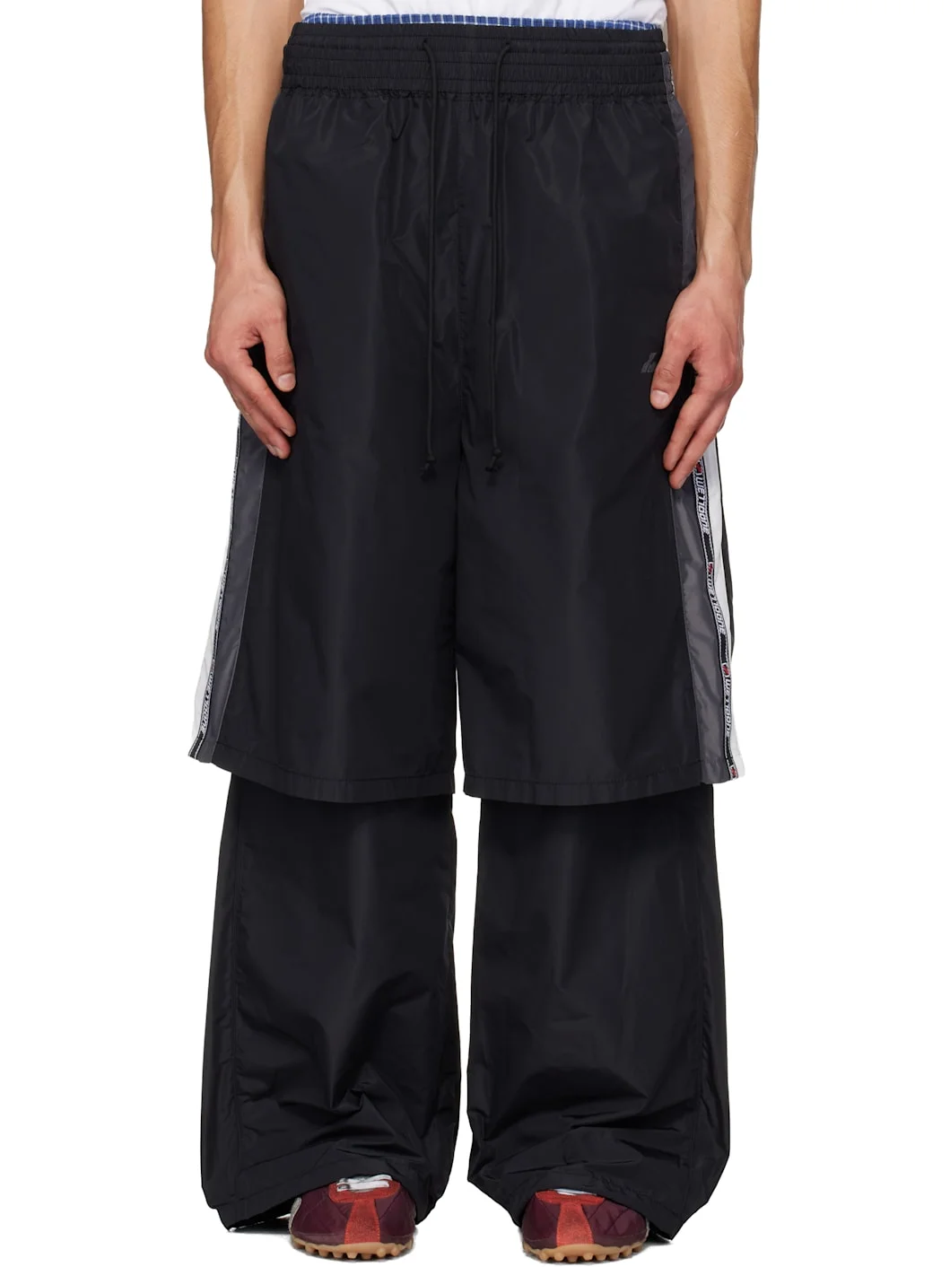 Jersey track pants. · Integrated shorts overlay · Integrated exposed boxers-style waistband · Drawstring at elasticized waistband · Two-pocket styling · Logo printed at front · Bungee-style drawstring at cuffs · Logo-woven trim and stripes at outseams Supplier color: Black Body: 100% polyester. Trim: 75% polyester, 25% cotton. Made in South Korea 261327M190014
