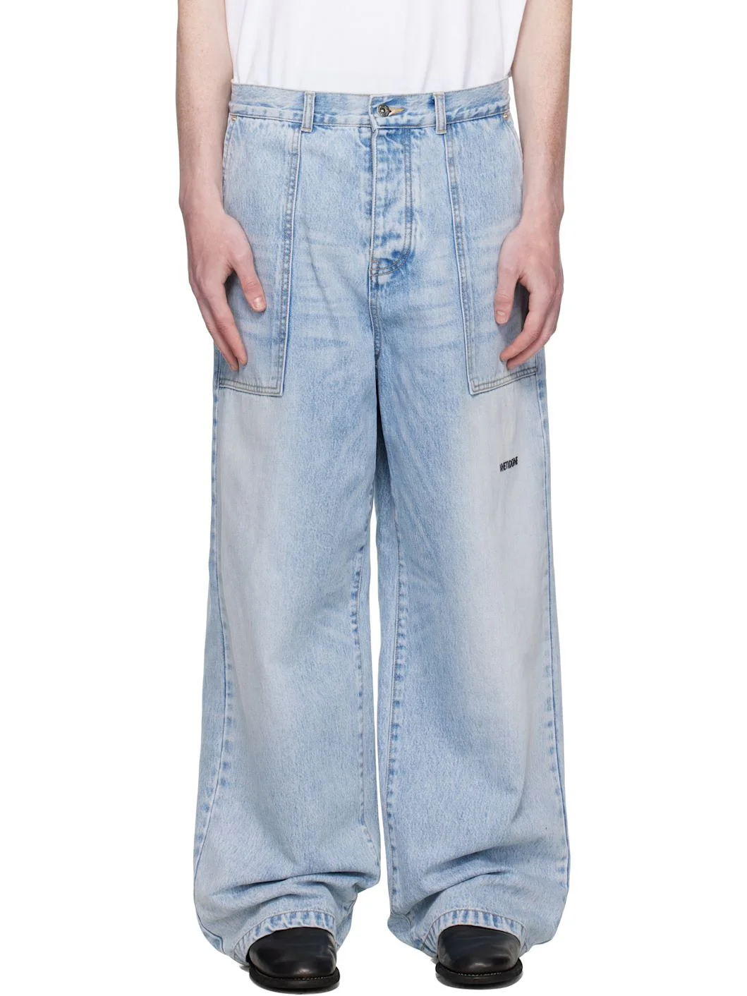 Non-stretch denim jeans. · Fading and whiskering throughout · Belt loops · Four-pocket styling · Button fly · Logo embroidered at leg · Contrast stitching in tan Supplier color: Sky 100% cotton. Made in South Korea 252327M186004