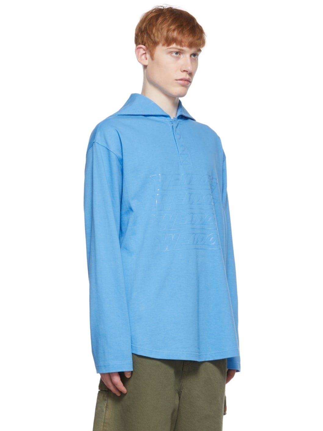 Cotton jersey henley. · Sailor collar · Concealed press-stud placket · Logo printed at front · Dropped shoulders · Rubberized logo patch at back collar Supplier color: Blue Body: 100% cotton. Trim 1: 65% viscose, 35% nylon. Trim 2: 62% viscose, 38% polyester.