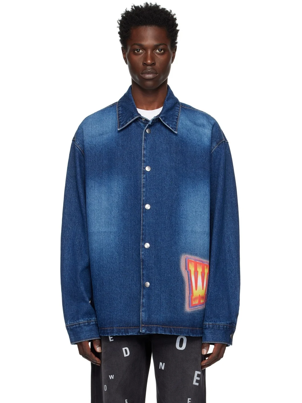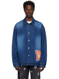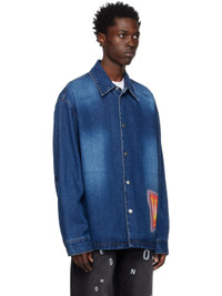 Non-stretch denim jacket. Fading throughout. · Spread collar · Press-stud closure · Welt pockets · Logo paint-effect at side seam · Press-stud barrel cuffs · Patch pockets at interior · Unlined · Logo-engraved silver-tone hardware · Contrast stitching in yellow Supplier color: Blue 100% cotton. Made in South Korea 222327M192006