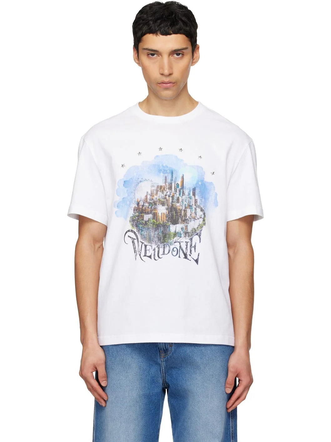 Cotton jersey T-shirt. · Rib-knit crewneck · Graphic studs at chest · Logo graphic printed at front · Dropped shoulders · Logo embroidered at back hem Supplier color: White Body: 100% cotton. Trim: 95% cotton, 5% polyurethane. Made in South Korea 261327M213007