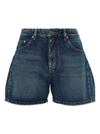 cotton denim shorts Highlights - Navy blue - Pleated detail - Button fly - Classic five pockets Imported Composition Cotton 100% Washing instructions Read Manufacturer Guidelines