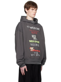 Gray Multi Logo Print Hoodie