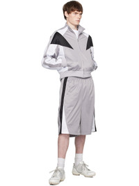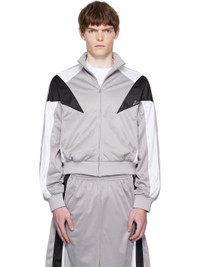 Jersey track jacket. · Paneled construction · Stand collar · Zip closure · Reflective logo printed at chest · Seam pockets at waist · Rib-knit hem and cuffs · Piping at raglan sleeves · Full mesh lining Supplier color: Silver Body: 100% polyester. Trim 1: 100% polyester. Trim 2: 100% polyester. Trim 3: 100% polyester. Made in South Korea 252327M202011