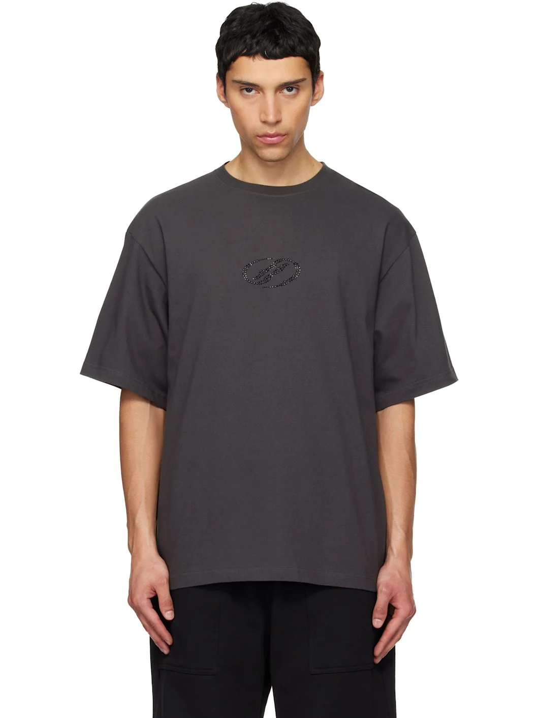 Cotton jersey T-shirt. · Rib-knit crewneck · Rhinestone logo at chest · Dropped shoulders · Logo embroidered at back hem Supplier color: Charcoal Body: 100% cotton. Trim: 95% cotton, 5% polyurethane. Made in South Korea 261327M213018