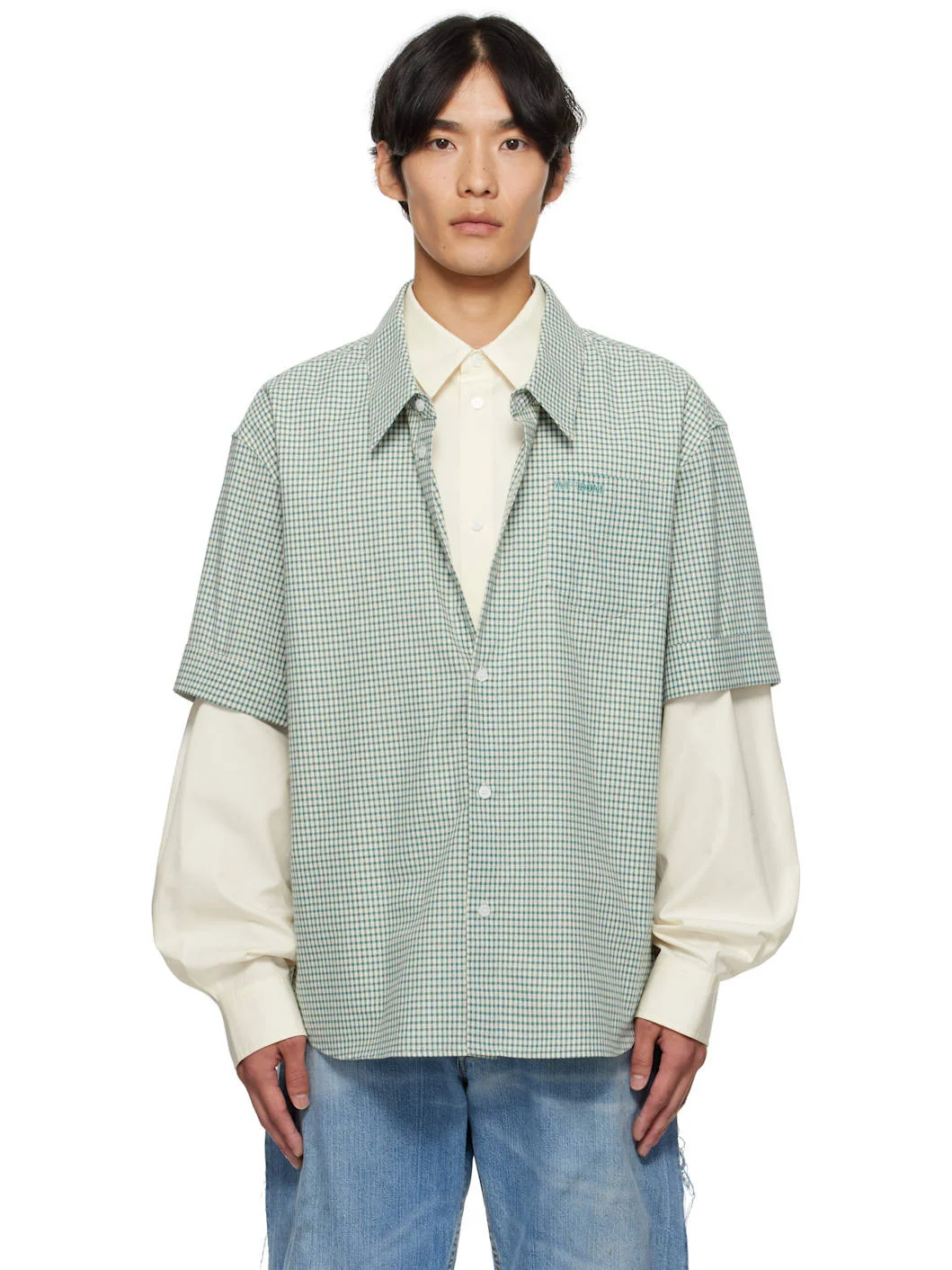 Plain-woven cotton and cotton poplin shirt. · Check pattern throughout · Integrated layered construction · Spread collars · Button closure · Logo-embroidered patch pocket at chest · Shirttail hem · Detachable sleeves · Buttoned barrel cuffs · Box pleat at back yoke Supplier color: Beige Body 1: 100% cotton. Body 2: 100% cotton. Made in South Korea 252327M192002
