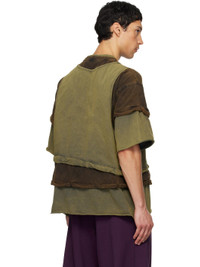 Green & Brown Triple Layered Washed T-shirt
