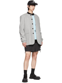 Wool and rayon-blend twill blazer. · Crewneck · Button closure · Welt pockets at waist · Elasticized cuffs · Central vent at back hem · Welt pockets at interior · Fully lined · Logo-embossed tortoiseshell hardware Supplier color: Melange grey Body: 54% wool, 46% rayon. Lining: 52% polyester, 48% rayon. Made in South Korea 221327M180004