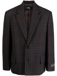 grid-pattern single-breasted blazer Highlights - Coffee brown/multicolour - Cotton - Grid pattern - Notched collar - Front button fastening - Long sleeves - Two front flap pockets - Full lining - When buying this unisex item, keep in mind that it is graded in standard men's sizing. Imported Composition Cotton 100% SIZE & FIT Model measurements Height 5 ft 10 in(1.77 m) Bust/Chest 31.49 in(80 cm) Hips 35.43 in(90 cm) Waist 25.19 in(64 cm) Measurement CHEST 49.6 in(126 cm) SLEEVE LENGTH 25.59 in(65 cm) WAIST 50.39 in(128 cm) Shoulder Width 20.86 in(53 cm) FittingInformation This piece is unisex. Please take care when selecting your size Designed for a loose fit for men and an oversized fit for women Made with a mid-weight non-stretch fabric Washing instructions Dry Clean Only