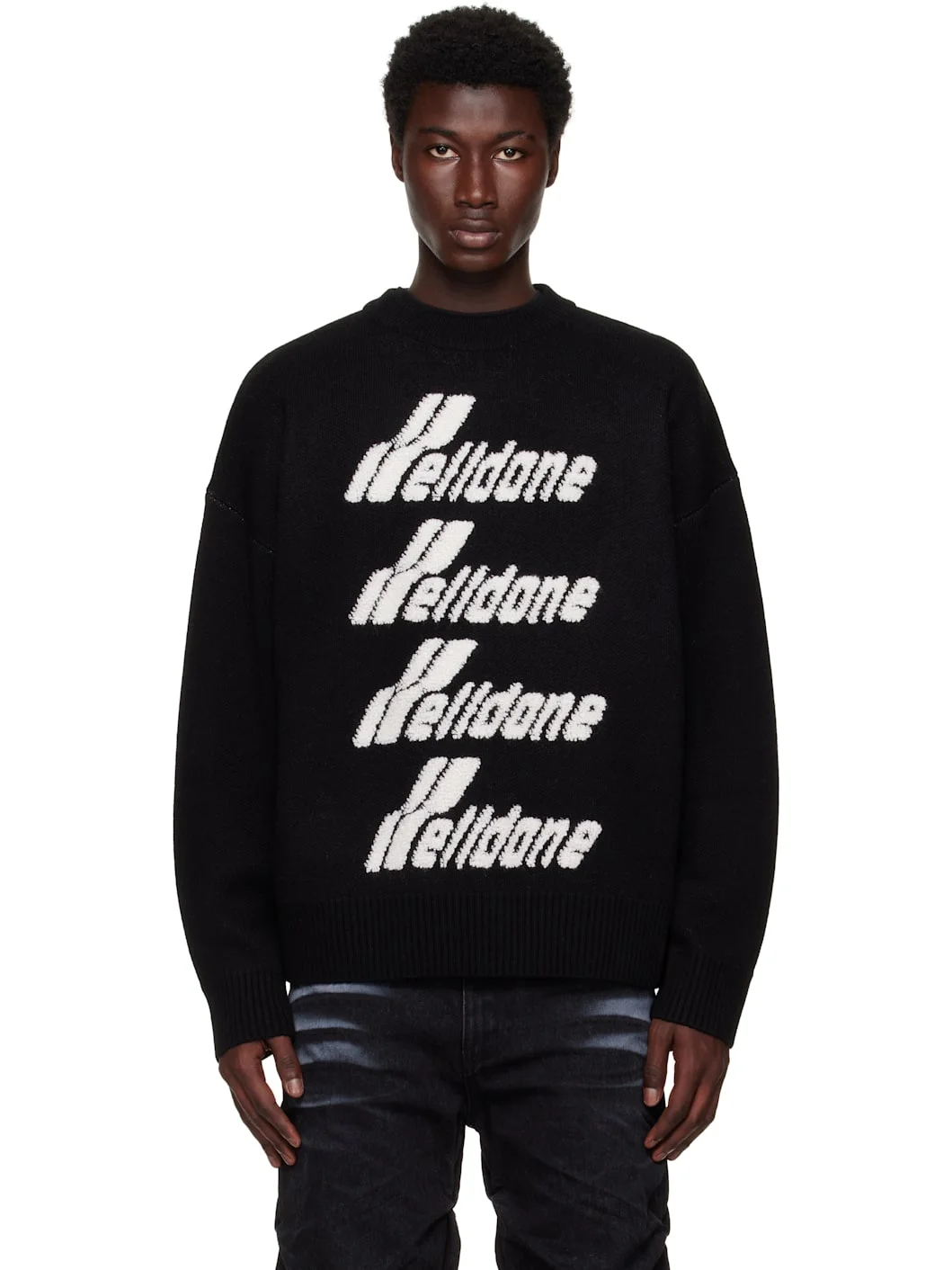 Knit wool-blend sweater. · Rib-knit crewneck, cuffs, and hem · Boucle logo at front · Dropped shoulders · Rubberized logo patch at back collar Supplier color: Black Body: 52% acrylic, 48% wool. Trim: 47% wool, 39% nylon, 14% polyester. Made in South Korea 252327M201007