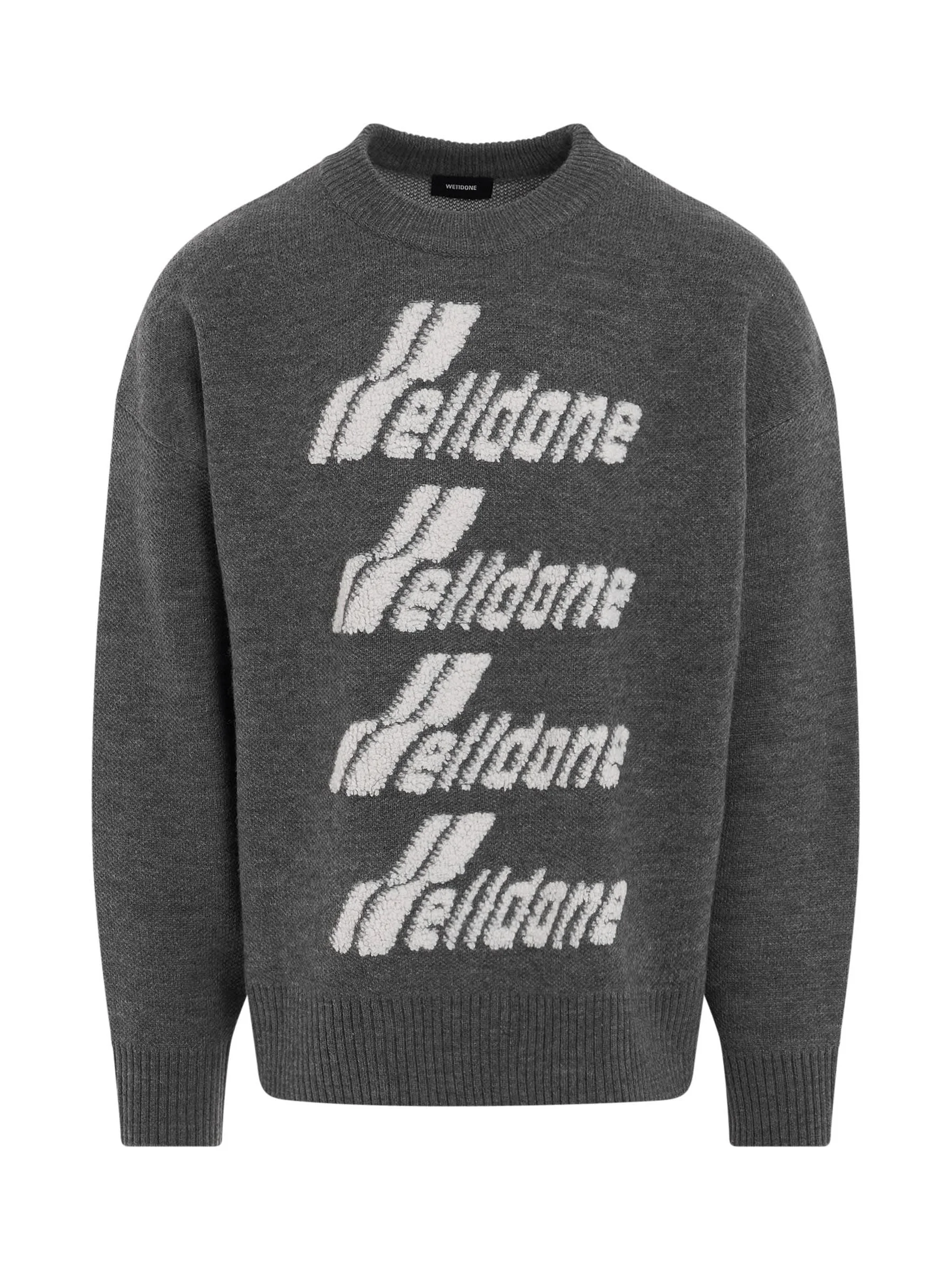 Long sleeves knit sweater in grey with wool blend featuring logo pile embroidered to the front with subtle logo patch at the back, crew neck and elasticated waistband. • Composition: 48% Wool, 35% Acrylic, 13% Nylon, 4% Polyester • Embroidered logo to the front • Fine knit • Logo patch to the rear • Ribbed trim • Crew neck • Long sleeves • Straight hem SKU: WDKO122666UGY